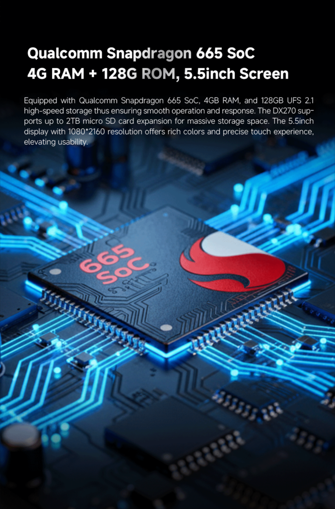 - Runs Android 13 + Mango OS with Snapdragon 665