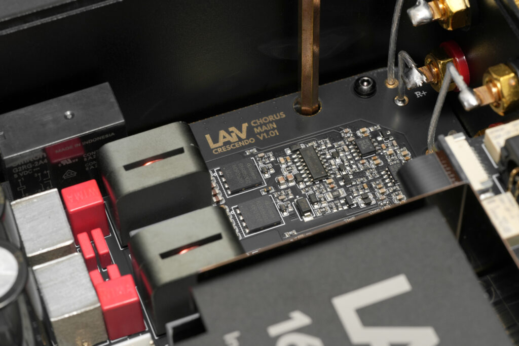 The LAiV Crescendo CHORUS is a GaN-powered stereo power amplifier that delivers audiophile-grade performance in a compact form factor. In stereo mode, it provides 50W per channel (8Ω) through a single-ended amplification design that accepts both XLR and RCA inputs. Switch to bridge mono mode and CHORUS takes a single input, converts it into a balanced signal, and outputs 120W (8Ω) of true balanced power. For the ultimate listening experience, pair two CHORUS units in bridge mono mode for 120W per channel with complete left/right electrical isolation, eliminating crosstalk and delivering a wider, more precise soundstage.