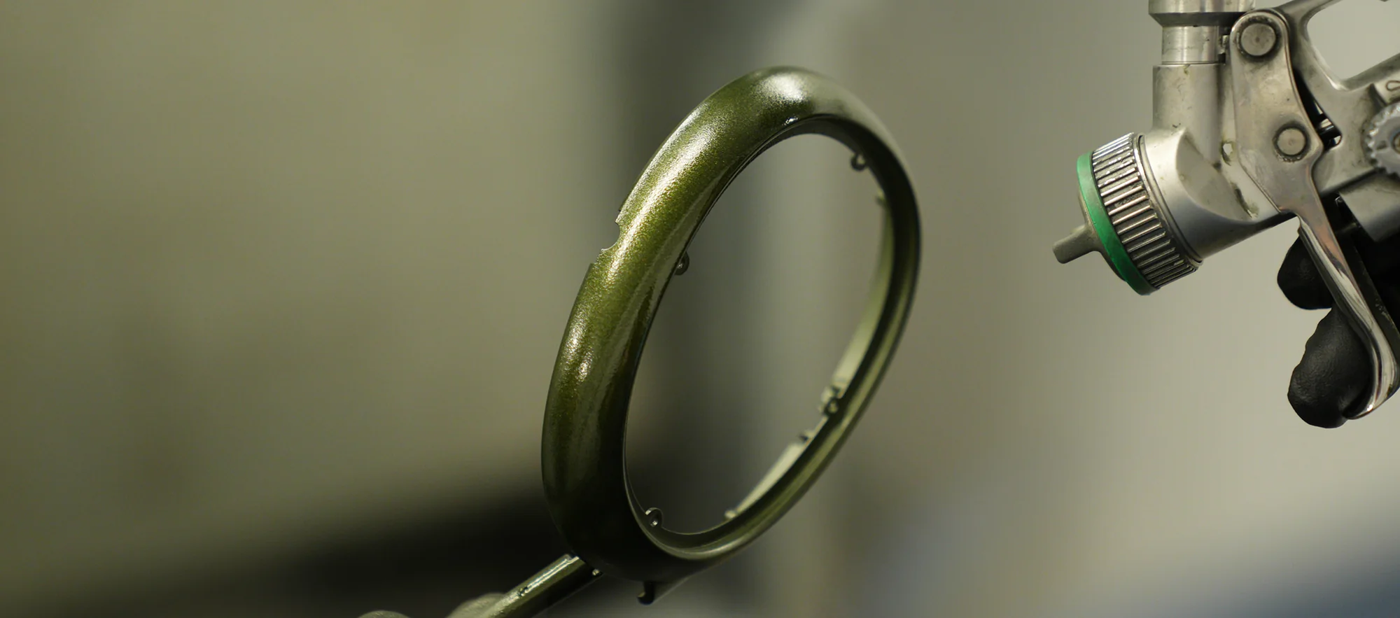 - Hand-painted in-house in a deep, refined shade of green with metallic particles
